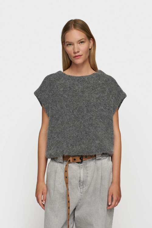 De Ballon Hairy Knit Top heeft een ontspannen pasvorm en valt op maat.