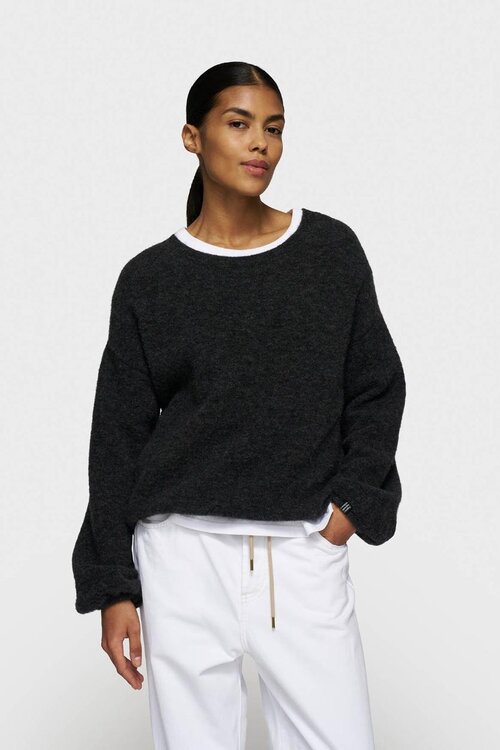 10DAYS Zachte Ronde Hals Trui – Gebreide Sweater met Alpaca in Antra Melee