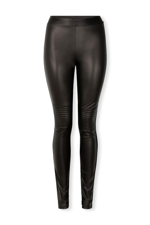Deze biker legging met een slanke pasvorm en lederlook is vervaardigd uit polyester en elastaan.