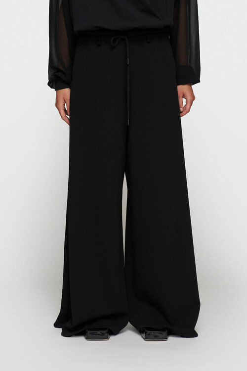 Comfortabele wide leg broek van zachte stretch crêpe. Mid waist met koord en riemlussen: stijlvol en gemakkelijk te dragen.