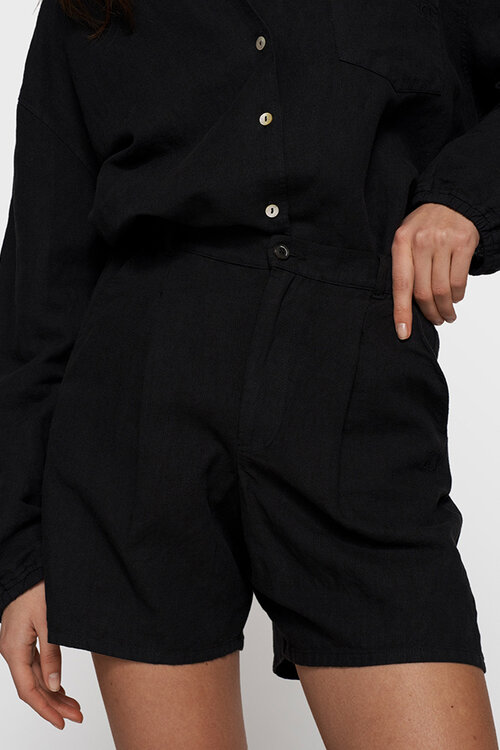 De 10DAYS Wijde Linnen Shorts in zwart biedt een comfortabele en luchtige ervaring met een ontspannen pasvorm. Dankzij de mix van linnen, viscose en een zachte jersey achterkant straalt deze short een eigentijdse stijl uit met maximaal draaggemak.