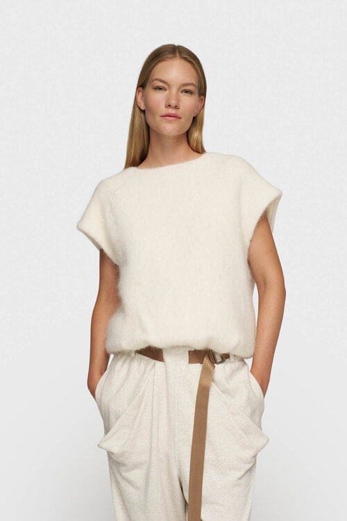 De Ballon Hairy Knit Top heeft een ontspannen pasvorm en valt op maat.
