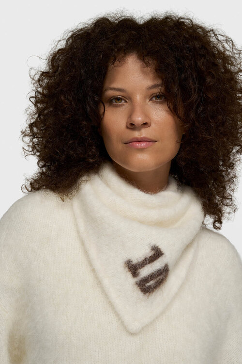 De 10DAYS gebreide bandana in ecru is een zachte sjaal in bandanastijl, vervaardigd uit een luxe mix van alpaca wol en voorzien van een subtiel 'baseball 10' logo.