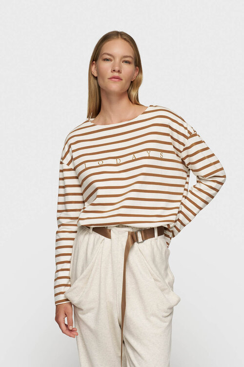 10DAYS Boat Neck Top Stripes – ecru/suede