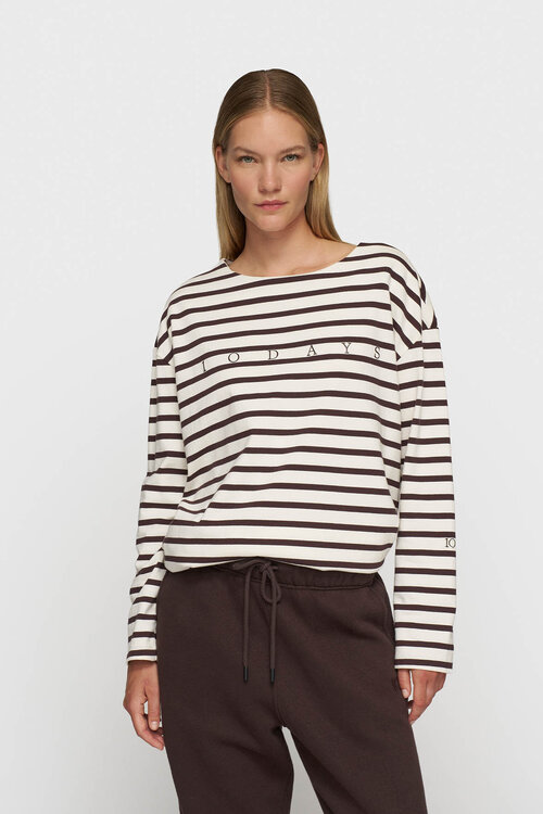 Ruimvallende top met strepen, vervaardigd van GOTS-gecertificeerd katoen. Voorzien van een brede boothals, verlaagde schoudernaden en een boxy 10DAYS-print.