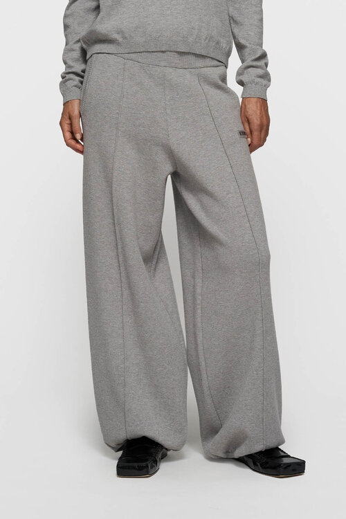 De 10DAYS western knit pants in grijs melee is een gebreide broek met een ontspannen pasvorm, gemaakt van zachte tech knit met pintuck-naden en een elastische tailleband voor extra comfort.