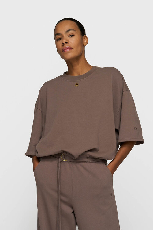 Ervaar de 10DAYS balloon sweater in moonrock, een sweater met een ontspannen pasvorm en een eigentijdse, vrouwelijke flair. Het zachte, GOTS-gecertificeerde biologische katoen biedt ultiem comfort, terwijl de ballonvormige zoom en subtiele 10-monogram borduring de kenmerkende 10DAYS stijl benadrukken.