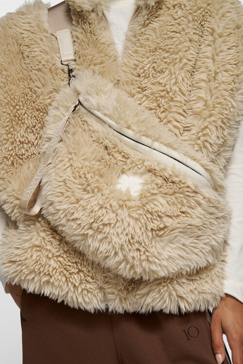 De 10DAYS fluffy crossbody tas in parel is een zachte tas van fleecebont met een verstelbare riem, ritsvakken en subtiele 10DAYS accenten.