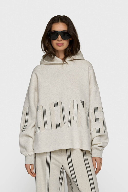 De 10DAYS statement hoodie in off white biedt een oversized pasvorm met een krachtige en comfortabele uitstraling. Het dikke, geborstelde fleece voelt heerlijk zacht aan, terwijl het grote gestreepte 10DAYS logopatch op de voorkant zorgt voor een opvallende en herkenbare look.