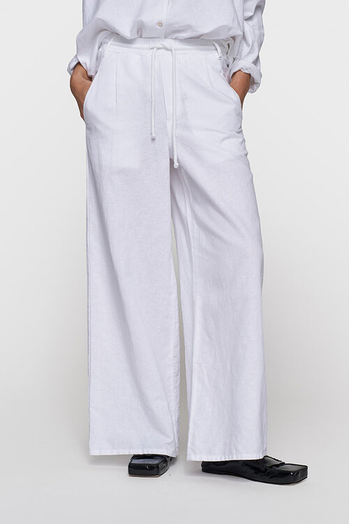 10DAYS Katoen Linnen Broek in wit met brede pijpen en ademende stof. Ideaal voor zomerse dagen. Nu verkrijgbaar bij VAND. Lifestyle. Lees meer.