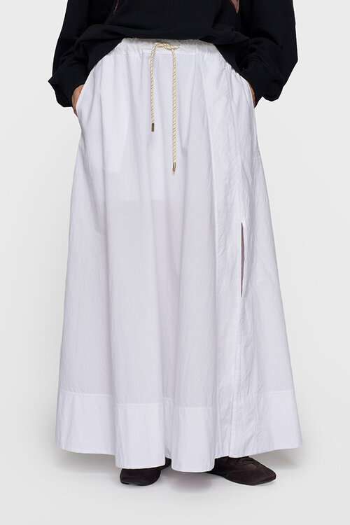 De 10DAYS Poplin Rok in wit biedt een luchtige maxi-stijl met een ontspannen pasvorm en een klassieke uitstraling. Vervaardigd van zacht poplin katoen, ideaal voor een stijlvolle zomerse outfit.