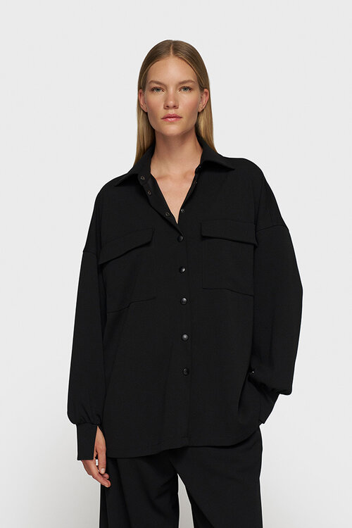 De 10DAYS The Leadership Blouse uit de 925-collectie biedt een krachtige, utilitaire stijl gecombineerd met ultiem draagcomfort. Deze oversized blouse in lichte zwarte crĆŖpe stretchstof valt elegant en zorgt voor een moeiteloze, professionele uitstraling.