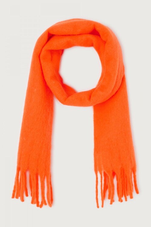 De Zi sjaal van American Vintage is een opvallend accessoire dat moeiteloos warmte en stijl samenbrengt. Met zijn levendige oranje kleur voegt deze sjaal een moderne en energieke flair toe aan elke outfit, perfect om je look een kleurrijke oppepper te geven.
