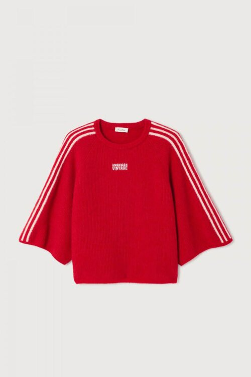 American Vintage Vitow damestrui in karmijnrood met een mix van alpaca-wol en sportieve strepen. Een opvallende trui voor dit seizoen. Plaats je bestelling vandaag nog. Lees meer.
