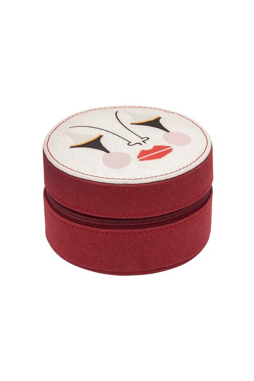 Bewaar je sieraden veilig én stijlvol met de Anna + Nina Pierrot Jewellery Box. Deze ronde juwelendoos met speels pierrot-design en diepe rode afwerking is een echte eyecatcher op je nachtkastje.