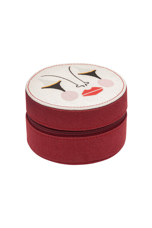 Houd je sieraden veilig en elegant opgeborgen met de Anna + Nina Pierrot Sieradendoos. Deze ronde doos met een speels pierrot-ontwerp en een rijke rode afwerking is een opvallend stuk op je nachtkastje.