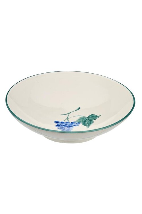 Breng een mediterrane sfeer naar je tafel met het Grapevine Pasta Plate van Anna+Nina. Dit keramieken bord, versierd met een handgeschilderde druivenillustratie, is ideaal voor pasta's, salades en andere comfortgerechten.