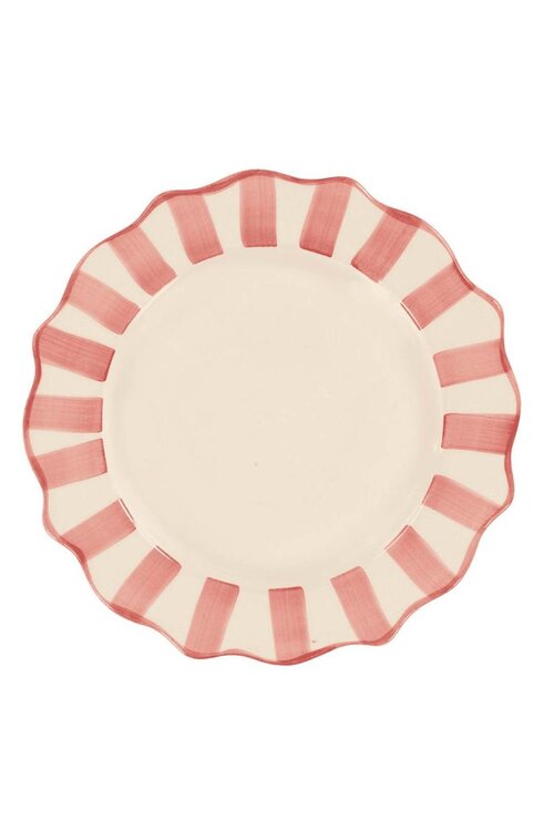 Breng een levendige en kleurrijke sfeer aan je ontbijttafel met het Anna + Nina Roze Golvend Ontbijtbord. Het speelse ontwerp met roze strepen en een golvende rand zorgt ervoor dat elk ontbijt een feestelijke ervaring wordt.