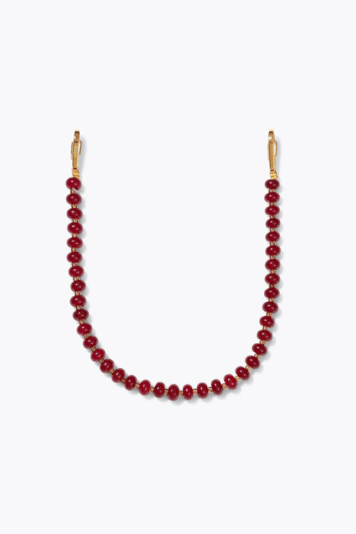 • Koord met glanzende kersenrode glaskralen