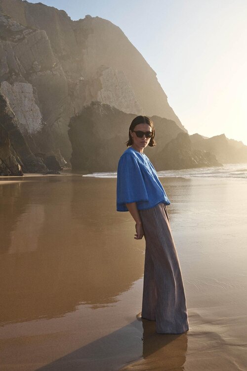 - Combineer met een basic T-shirt of top voor een ontspannen look