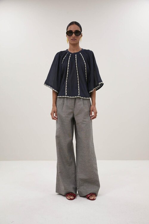 - By-bar emmi embroidery blouse in de kleur: charcoal
