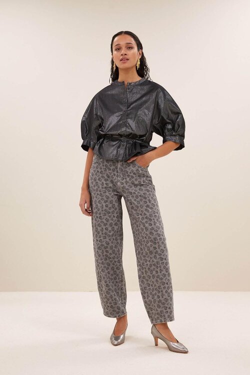 De By Bar Christi Silver Blouse is een elegante lange mouwen blouse in een opvallende zilveren kleur. Deze blouse geeft je outfit direct een moderne en chique uitstraling. Perfect te combineren met een By Bar pantalon of een klassieke By Bar jeans voor een stijlvolle look met een twist.