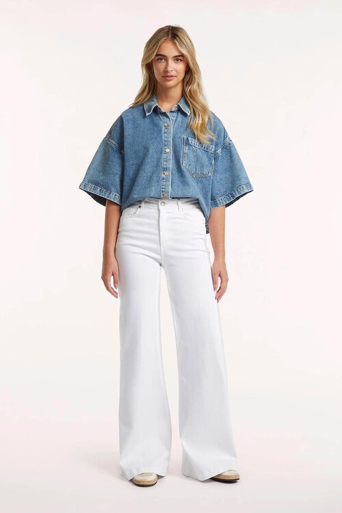 De Palmer jeans van Circle of Trust biedt een high-rise en wijde pijpen, wat zorgt voor een eigentijdse en flatterende pasvorm. De heldere witte kleur geeft de jeans een schone en stijlvolle look.
