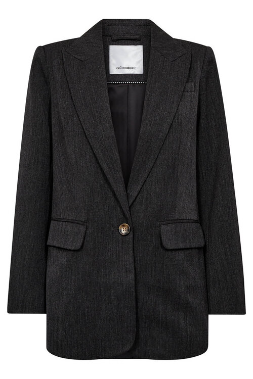 Co'Couture Susie blazer in Donkergrijs (140): enkelrijig, lang model met strakke afwerking. Lees meer.