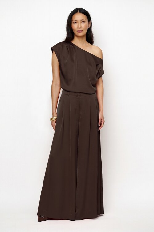 Dante6 Onique wijde satijnen broek in Espresso Brown