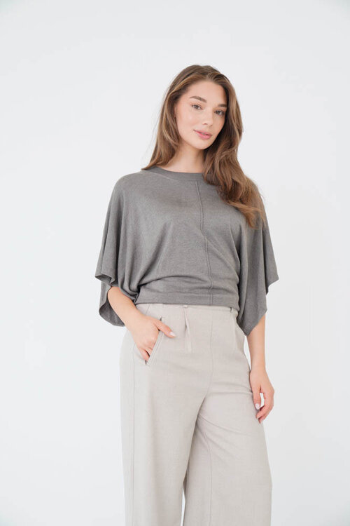 De Suzette Gebreide Top van Est’seven in Donkergrijs is een eigentijdse knit die stijlvol comfort biedt. Het luchtige design met vleermuismouwen verleent de top een verfijnde en relaxte uitstraling, terwijl de diepe grijze kleur een veelzijdige en tijdloze look creëert.