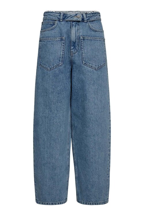 Een flip waist is een opvallend taille-detail dat de jeans een eigentijdse, modieuze uitstraling geeft.