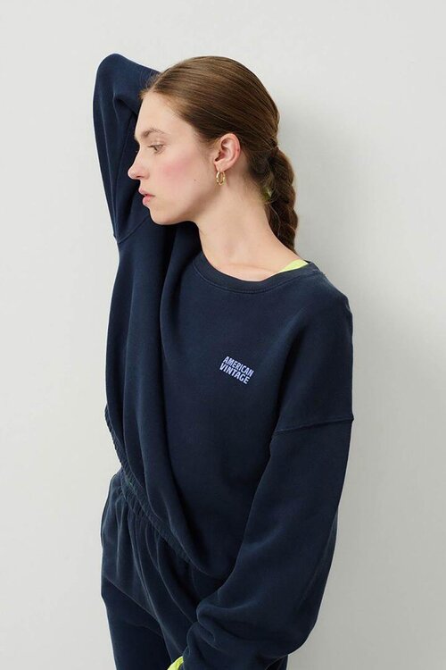 Deze trui van American Vintage in de kleur Marine vintage is een onmisbaar item voor iedereen die houdt van comfortabele en moderne mode. De blauwe tint zorgt voor een relaxte, vintage look, terwijl de trui zelf vervaardigd is van een zachte katoenmix die aangenaam aanvoelt op de huid. Met zijn losse pasvorm en subtiele details is dit kledingstuk perfect voor een ontspannen uitstraling met een stijlvolle twist. Combineer het moeiteloos met een spijkerbroek of een casual rok.