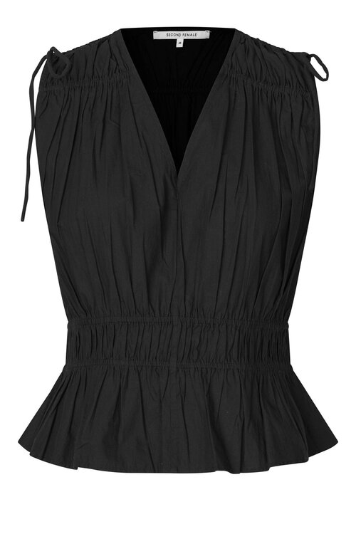 Beoordeel Second Female Zwarte Carpi Top: Elegante en veelzijdige top in zwart, perfect voor elke gelegenheid.
