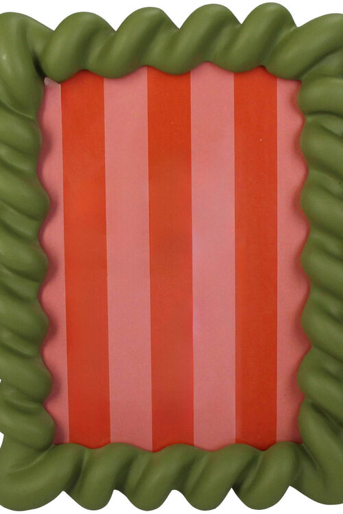 Fotolijst van VAND. Lifestyle (13×18 cm) met een golvend frame in olijfgroen. Deze moderne en kleurrijke lijst voegt een speelse touch toe en is een echte eyecatcher. Lees meer.