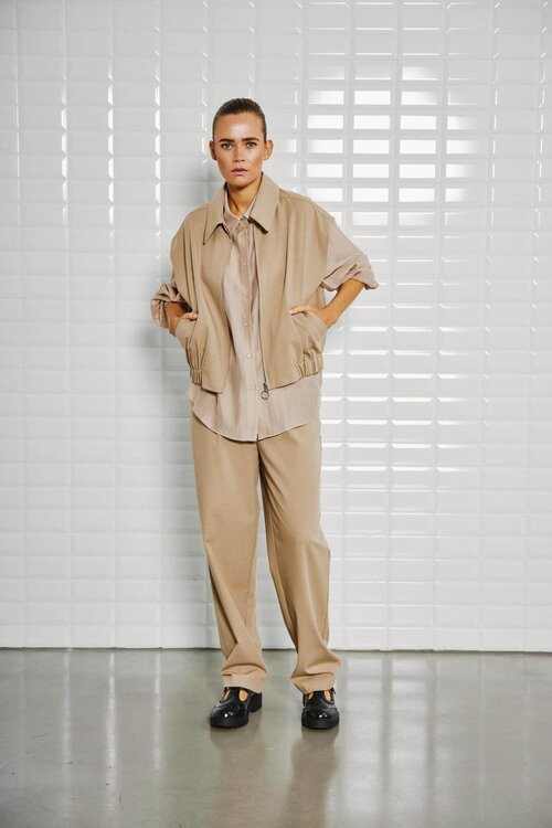 De Valentina Gilet in Falcon Melange van With Black is een moderne creatie die kracht en subtiliteit harmonieus combineert. Dankzij de ontspannen pasvorm en verfijnde snit straalt dit kledingstuk zowel eigentijdse flair als tijdloze elegantie uit. De elastische zoom en de rits met ringpull detail voegen een casual tintje toe, terwijl de neutrale tint zorgt voor veelzijdigheid in je garderobe.