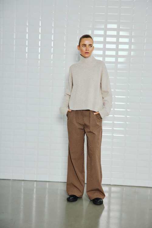 De Harlow trui van With Black in de tint Porridge is een eigentijdse must-have die een minimalistische elegantie belichaamt. Deze knit, vervaardigd uit een zachte wolmix, biedt een luxueus en comfortabel gevoel. De strakke lijnen en subtiele accenten zorgen voor een tijdloos ontwerp. De hoge ribgebreide kraag en brede boorden geven een verfijnde touch, waardoor de trui veelzijdig genoeg is voor dagelijks gebruik.