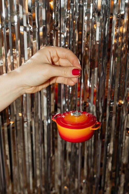 Voeg een vleugje warmte en culinaire flair toe aan je kerstboom met deze opvallende oranje Gietijzeren Pan van Yup in de Boom ā een must-have voor elke foodie.